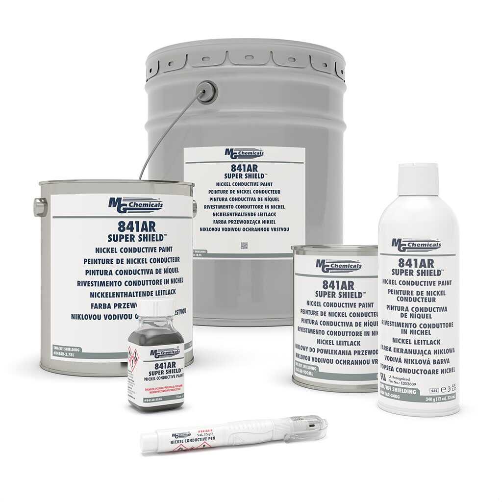 MG Chemicals 841AR Super Shield Nickel Conductive Paint, nikel bazlı iletken dolgu içeren ve yüzeylere uygulandığında sürekli elektriksel iletkenlik sağlayan yüksek performanslı iletken boyadır. EMI/RFI ekranlama gerektiren elektronik muhafazalarda, elektromanyetik girişimi azaltmak ve ESD kontrolü sağlamak amacıyla kullanılır. Nikel içerikli yapısı sayesinde karbon bazlı iletken boyalara kıyasla daha düşük yüzey direnci ve daha yüksek ekranlama etkinliği sunar. Ürün farklı hacim seçenekleri ve hassas uygulamalar için kalem (pen) formu ile sunulmaktadır.