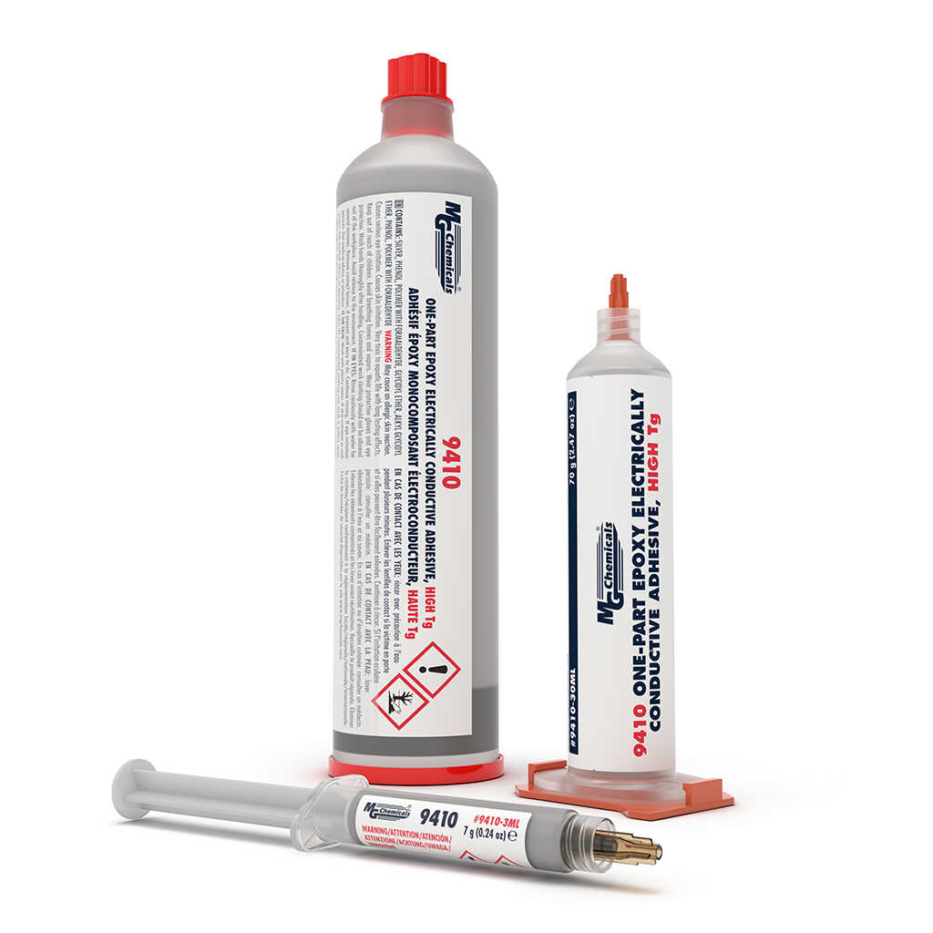 MG Chemicals 9410 One-Part Epoxy Electrically Conductive Adhesive, tek bileşenli epoksi bazlı yapısı ve elektriksel iletken dolgu içeriği sayesinde hem güçlü yapışma hem de kararlı iletkenlik sağlayan profesyonel bir yapıştırıcıdır. Yüksek Tg değeri sayesinde yüksek sıcaklık altında dahi mekanik ve elektriksel performansını korur. Isı ile kürlenerek rijit ve iletken bir bağ oluşturur.