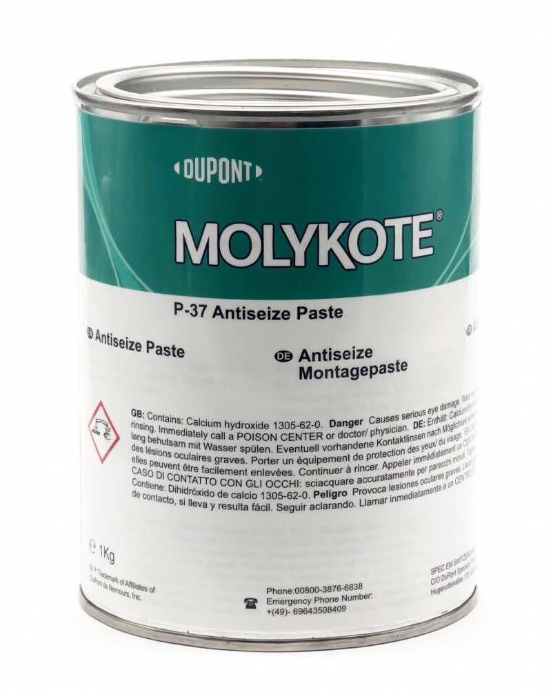 DuPont™ MOLYKOTE® P-37 Anti-Seize Paste is a heavy-duty, high-purity solid lubricant paste developed for bolt connections exposed to extreme temperatures. Its advanced formulation is free of lead, nickel, sulfur, chlorine, fluorine, and PTFE, ensuring safe use in critical applications such as turbines, nuclear systems, and aerospace engineering.